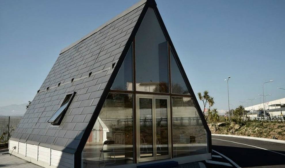 De hecho, una vez has decidido hacerte con uno de estos hogares M.A.Di las siglas de Modulo abitativo dispiegable y has pagado, el equipo de construcción se pone manos a la obra y te deja tu vivienda lista en el lugar que tú desees en solo seis o siete horas de trabajo. Imaginamos que, siendo así, uno debe tener una parcela propia donde instalar su nueva casa triangular. El montaje funciona de la siguiente manera: sin necesidad de cimientos de hormigón, cosa que nos nos acaba de merecer toda la confianza del mundo a pesar de que el arquitecto especifique que están preparadas contra terremotos y otros desastres, se parte de un módulo triangular por la forma del tejado que se despliega para ser el eje central de la casa.